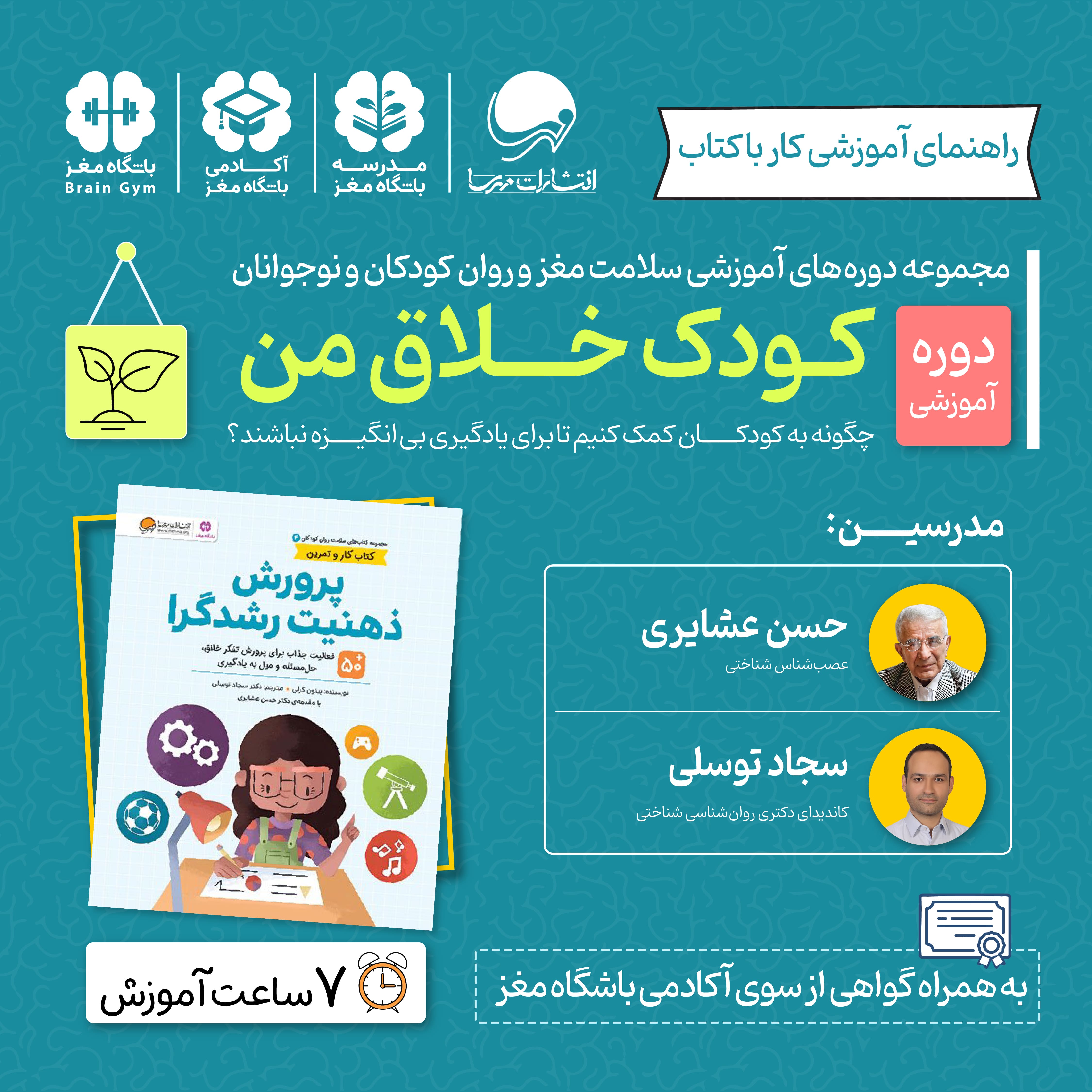 دورهی «کودک خلاق من» با تکیه بر تمرینهای علمی و جذاب کتاب پرورش ذهنیت رشدگرا و ترکیب دیدگاههای روانشناسی شناختی و علوم اعصاب، به والدین، مربیان، مشاوران و دانشجویان روانشناسی میآموزد چگونه به کودکان کمک کنند تا تواناییهای خود را شکوفا کنند و از چالشها بهعنوان فرصت یادگیری بهره ببرند.
